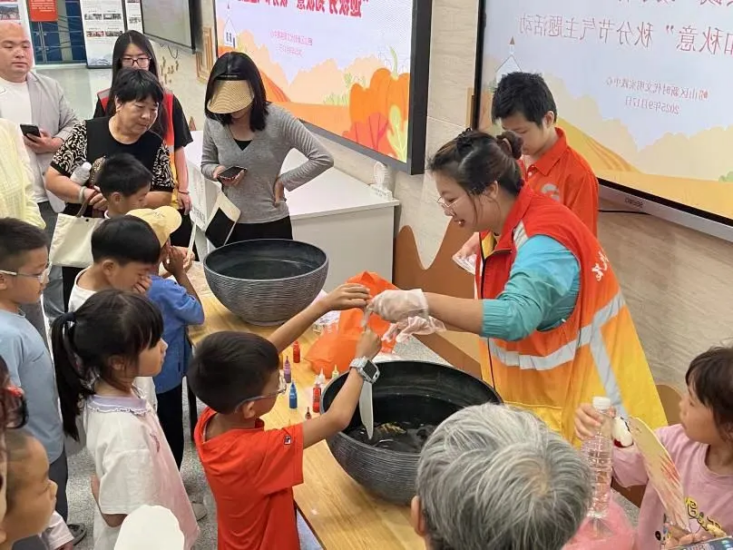 9 月 6 日,为传承非遗漆艺、丰富社区老年人生活,“小星云”志愿服务队走进锦绣花园社区开展漆扇体验活动,志愿者讲解漆扇历史、指导老人创作,让非遗在互动中焕发生机。9 月 17 日,“小星云”志愿服务队携手崂山区新时代文明实践中心与松岭路小学,组织30余名亲子开展 “迎秋分,知秋意” 活动,志愿者解读秋分节气、分享养生知识,还通过 “竖蛋” 游戏和漆扇制作,增进亲子文化互动、激发青少年文化热爱。 9 月 30 日,团队联合青岛大学附属实验学校开展餐桌礼仪宣讲,以趣味形式普及用餐礼仪,完善学校德育体系的同时,为中小学生搭建实践平台。