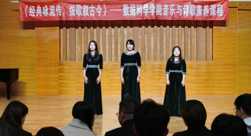 本次素养课程以诗歌为魂、音乐为桥,既让学生沉浸式感受经典魅力,又在古今艺术对话中涵养人文底蕴、厚植文化自信。未来,数据科学学院将持续创新素养课程形式,助力学生全面发展,为培养兼具专业能力与文化素养的时代新人筑牢根基。