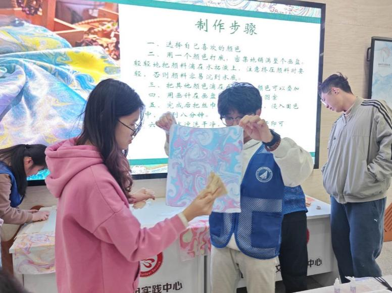为强化传统文化传承与推广,充分发挥志愿服务在文化传播中的积极作用,2025年11月13日下午,“小星云”志愿服务团队走进青岛崂山新时代文明实践中心,参与“水拓丝巾”传统文化主题课堂。活动特邀王俊、李贞两位专业导师授课,志愿者们以水为媒、以丝为载体,沉浸式体验千年非遗技艺,用青春力量为传统文化传承注入鲜活动能,助力青岛“非遗之城”建设走深走实。