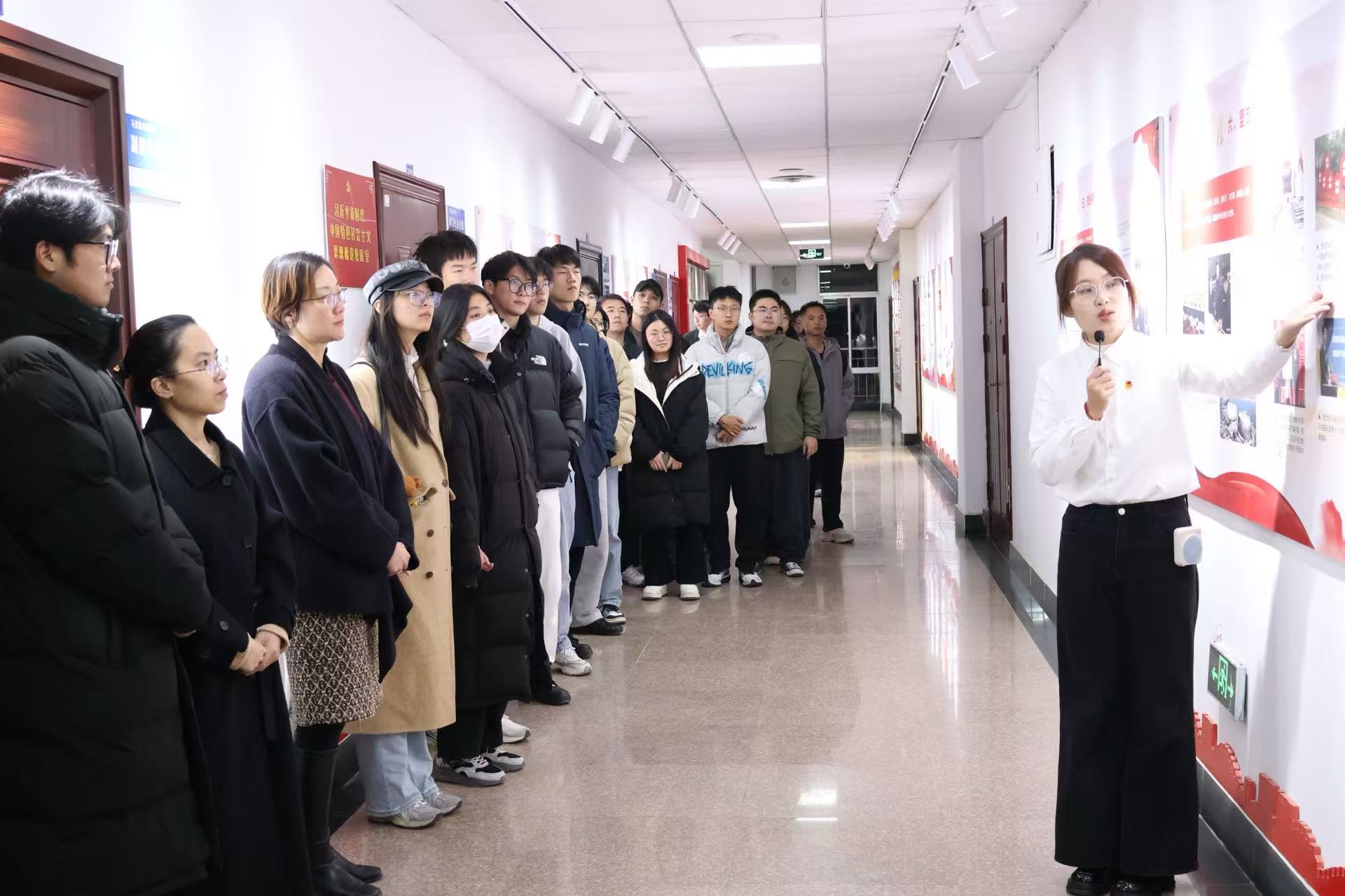 活动伊始,全体参与人员在马克思主义学院“理响”宣讲团的带领下参观“社会主义五百年”主题展板。参观过程中,党员同志们驻足凝视、认真聆听,不时围绕展板内容与宣讲团成员交流探讨,在回望历史、感悟真理中进一步深化了对党的二十届四中全会精神的理解,坚定了走中国特色社会主义道路的信心与决心。全体党员纷纷表示,此次参观既是一次深刻的理论熏陶,也是一次鲜活的党性教育,为后续的学习交流奠定了坚实的思想基础。