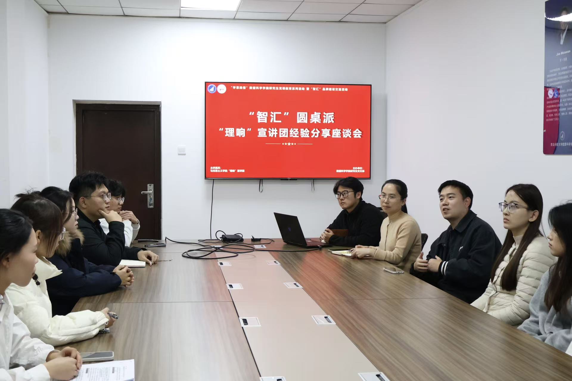 会后,为深入学习贯彻党的创新理论,构建“智汇”跨学科交流平台,促进数据科学学院“智汇”讲师团与马克思主义学院“理响”宣讲团在宣讲团组织建设、面向群体、教学方式等方面展开热烈的讨论。党支部书记孙丽敏围绕座谈会所交流的内容,深度凝练“科普性”“实用性”“专业性”讲师团备课三层次逻辑,要针对不同的群体针对性做宣讲,加强讲师团建设。