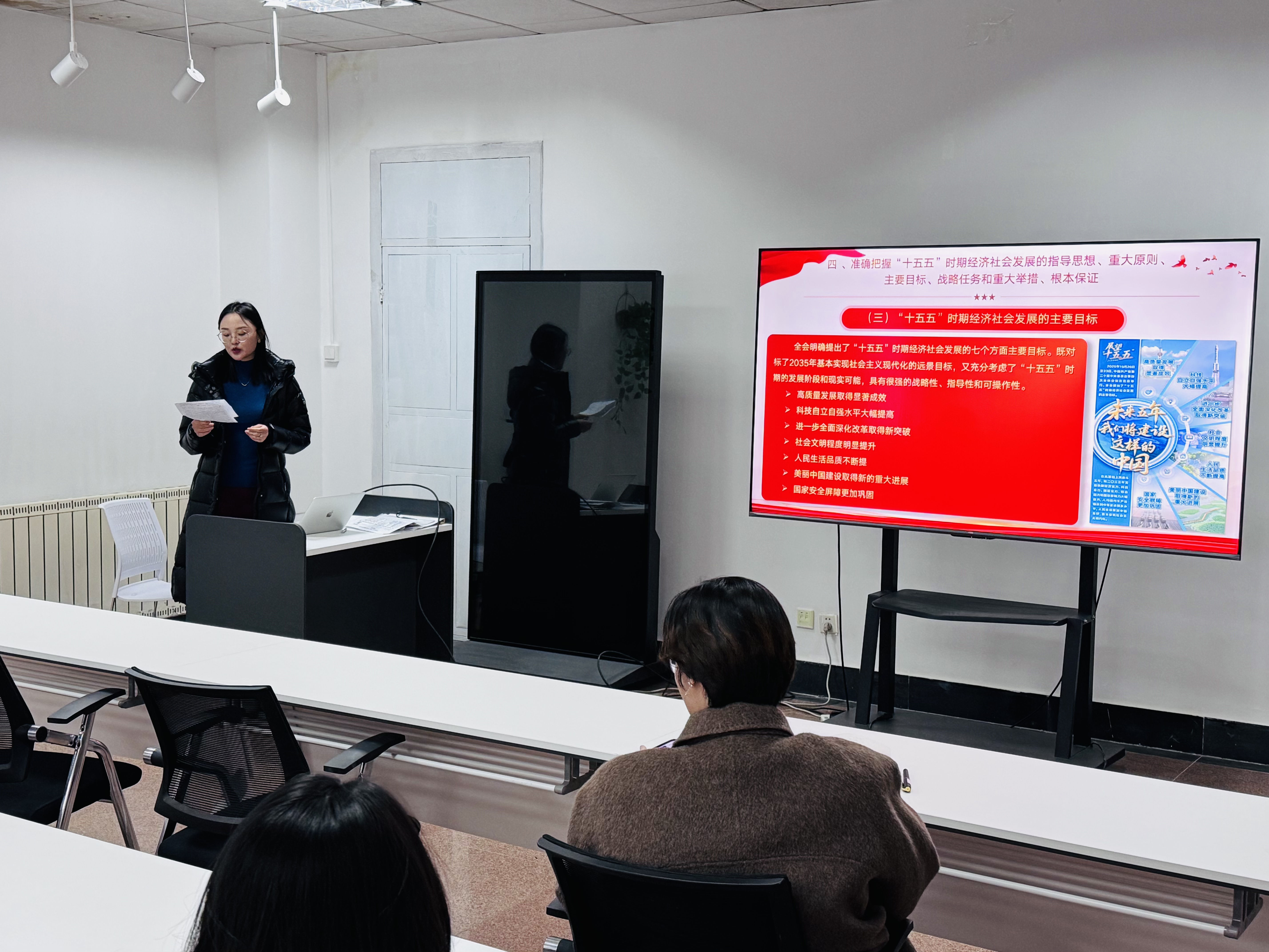 为深入学习贯彻党的二十届四中全会精神,引导青年学子准确把握全会核心要义与时代内涵,12月17日,数据科学学院在崂山校区“一站式”学生服务中心社团活动室开展“党的二十届四中全会精神专题宣讲”活动。党委副书记兼副院长顾姗姗出席,孙媛媛老师主讲,全体青马工程培训班学员参加。