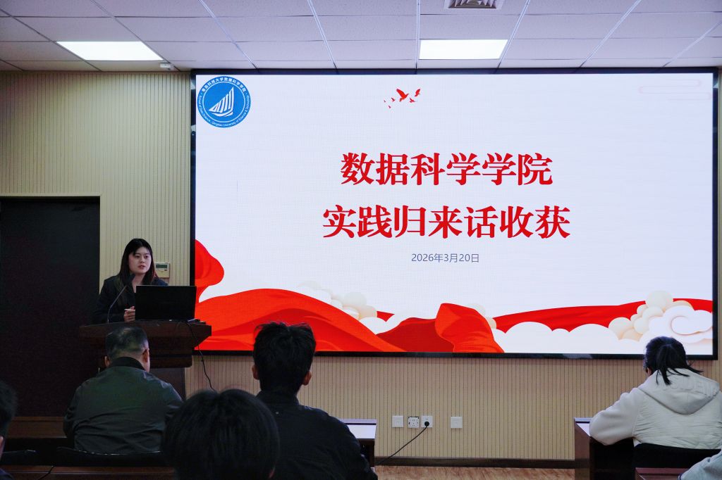 为激励同学们分享社会实践经历、交流成长感悟、凝聚奋进力量,3月20日,数据科学学院于图书馆A区4008报告厅成功举办2026年寒假“实践归来话收获”交流分享会,此次分享会由数据科学学院辅导员卞文馨主持,辅导员李冬参会。
