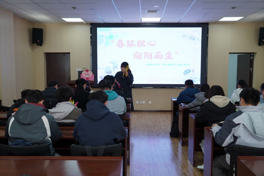 为深入贯彻落实大学生心理健康教育相关工作要求,切实关注学生心理健康状况,3月19日下午,数据科学学院在图书馆A区4008会议室举办“春环织心,向阳而生”“3·25善爱我”心理健康主题活动。本次活动邀请到崂山区新时代文明实践中心工作人员进行现场指导。