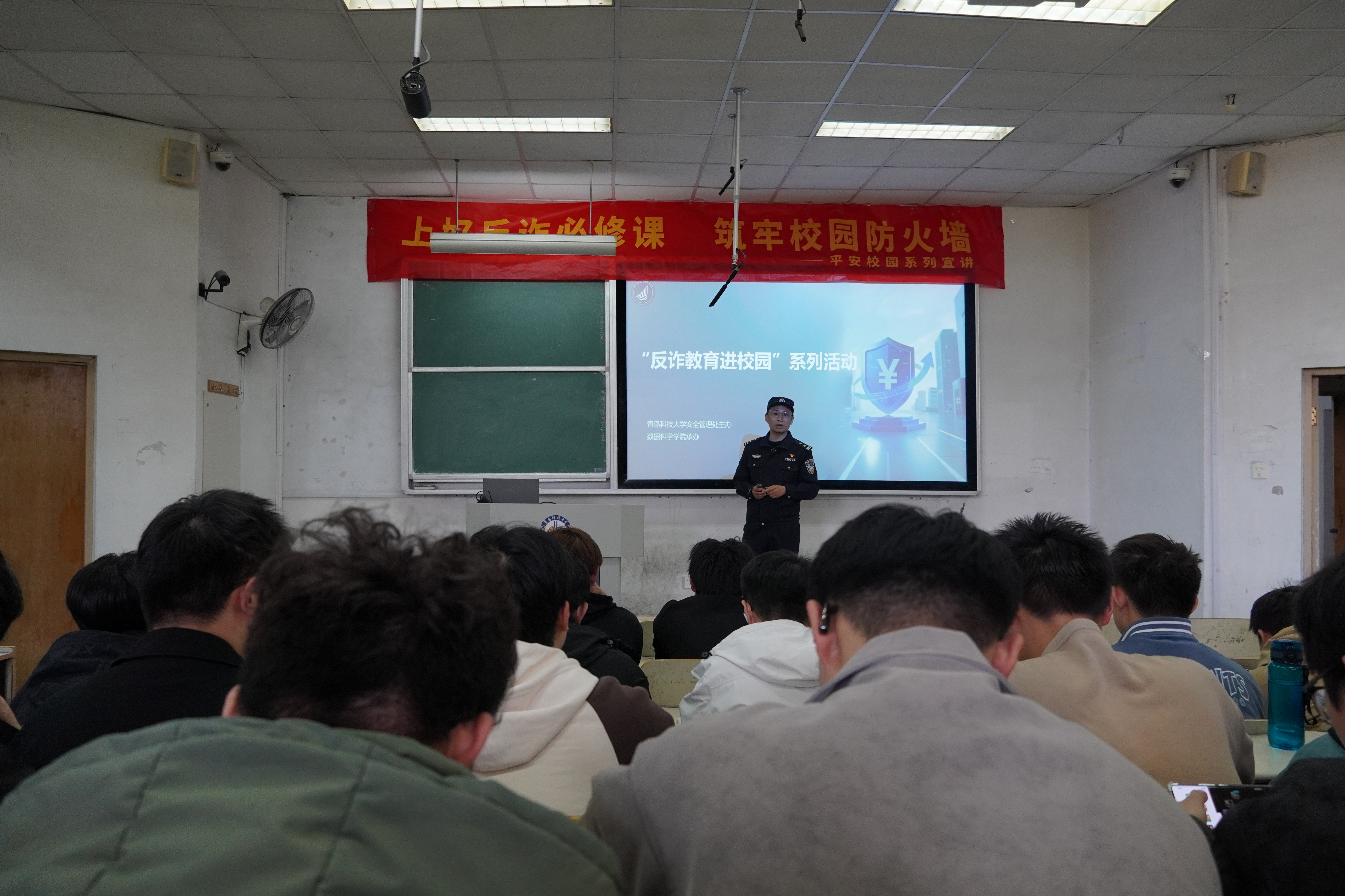 为进一步提升大学生安全防范意识,筑牢校园安全屏障,3月31日下午,数据科学学院在弘毅楼E区102教室顺利开展“反诈教育进校园”素养课程。学院特邀崂山分局金家岭派出所钟连魏警官担任主讲。