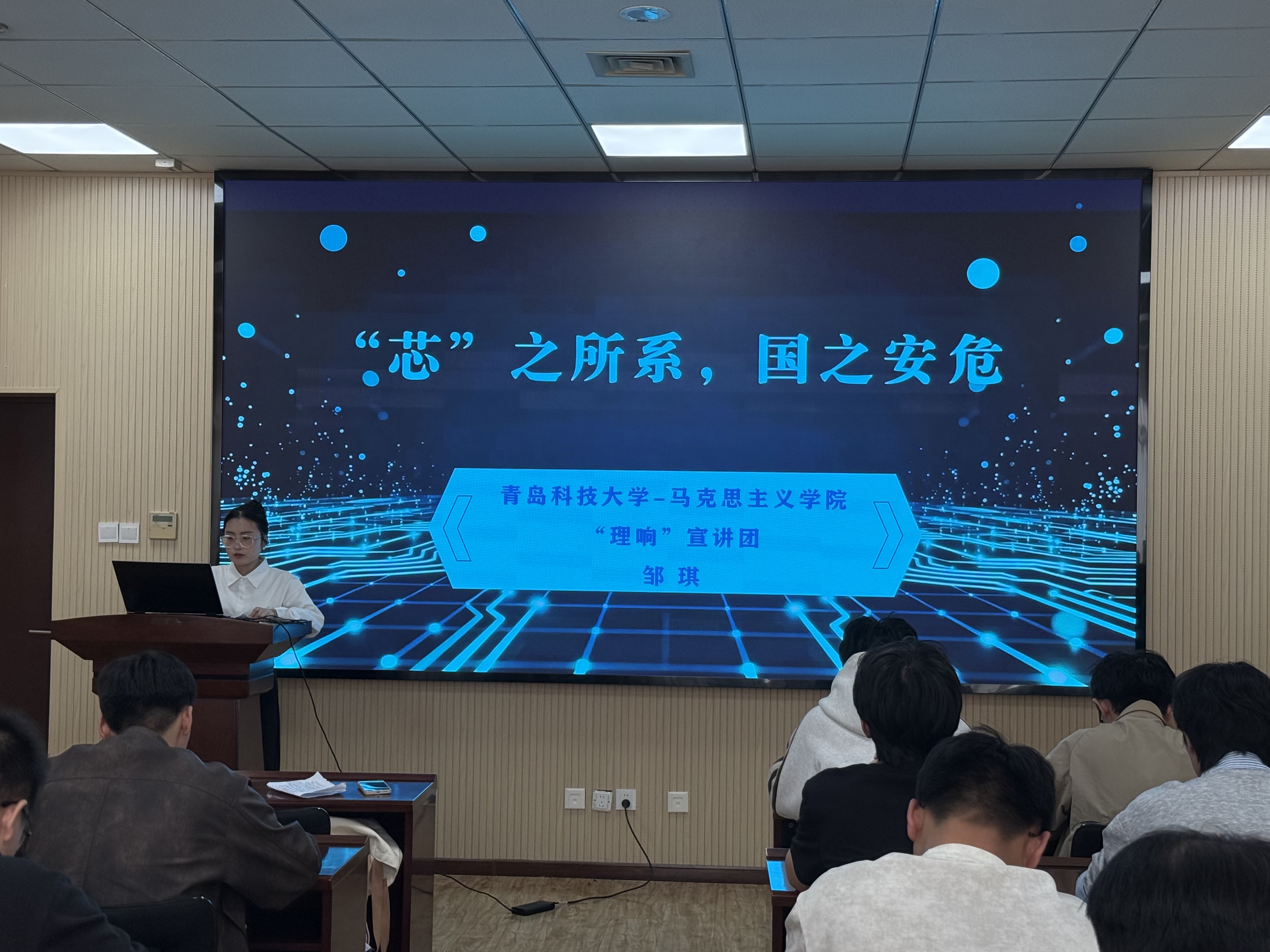 活动中,刘淑欣以“树牢国家安全观 青春共筑强国梦”为主题进行宣讲。她从总体国家安全观的核心内涵切入,系统阐释了国家安全的丰富内容和时代意义;随后结合国际热点事件,引导同学们认识国家安全底线;并围绕新时代国家安全面临的内外部挑战,强调青年学生应坚定理想信念、严守行为底线。