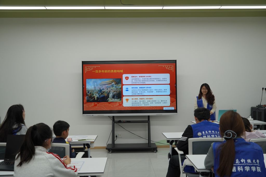 为了弘扬五四精神、传承红色基因,数据科学学院“小星云”志愿服务队于4月25日在青岛中韩街道瑶海路社区公益课堂中,开展五四青年节宣讲活动,用青春力量引导青少年树立爱国奋进的理想信念。