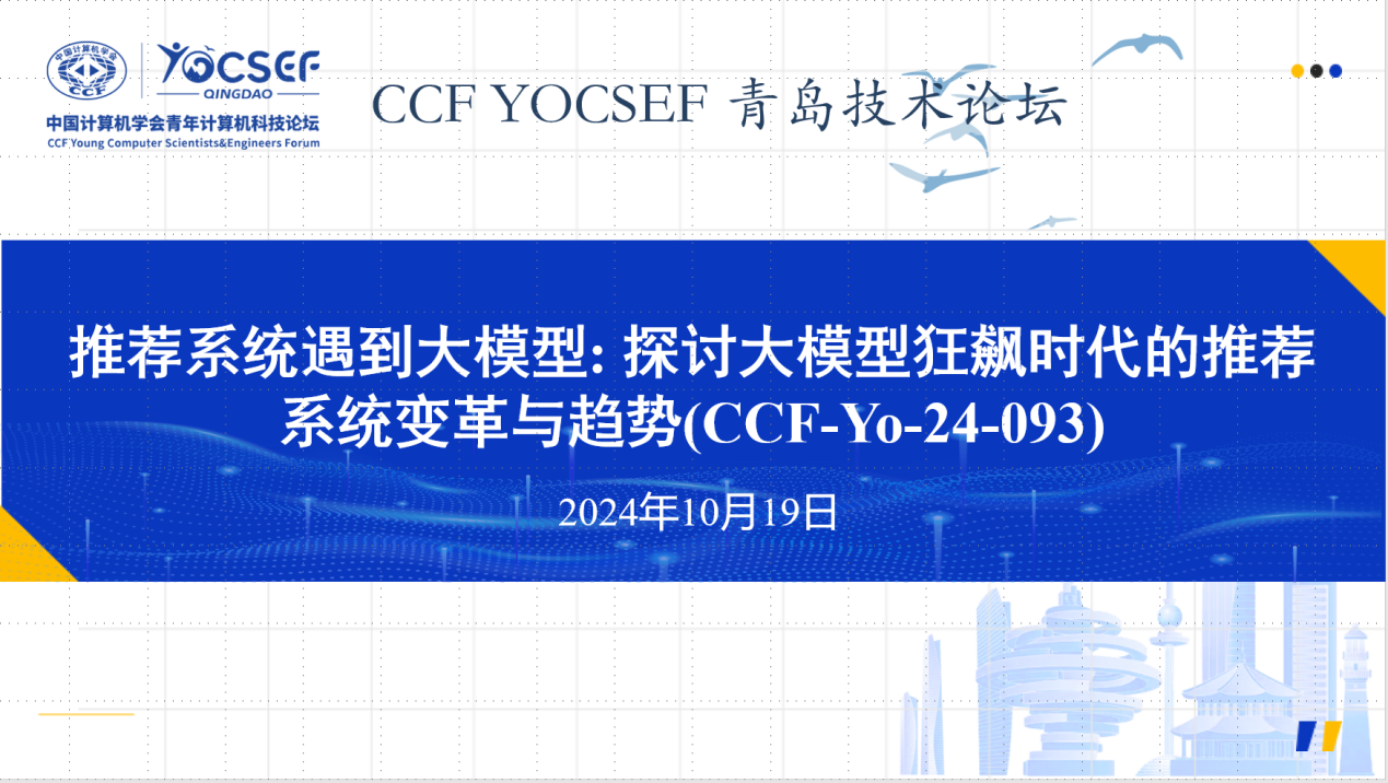 10月19日,CCFYOCSEF青岛技术论坛“推荐系统遇到大模型”在学校成功举办,论坛采取线下加线上的形式进行,对大模型狂飙时代,推荐系统的变革与发展趋势展开思辨研讨。