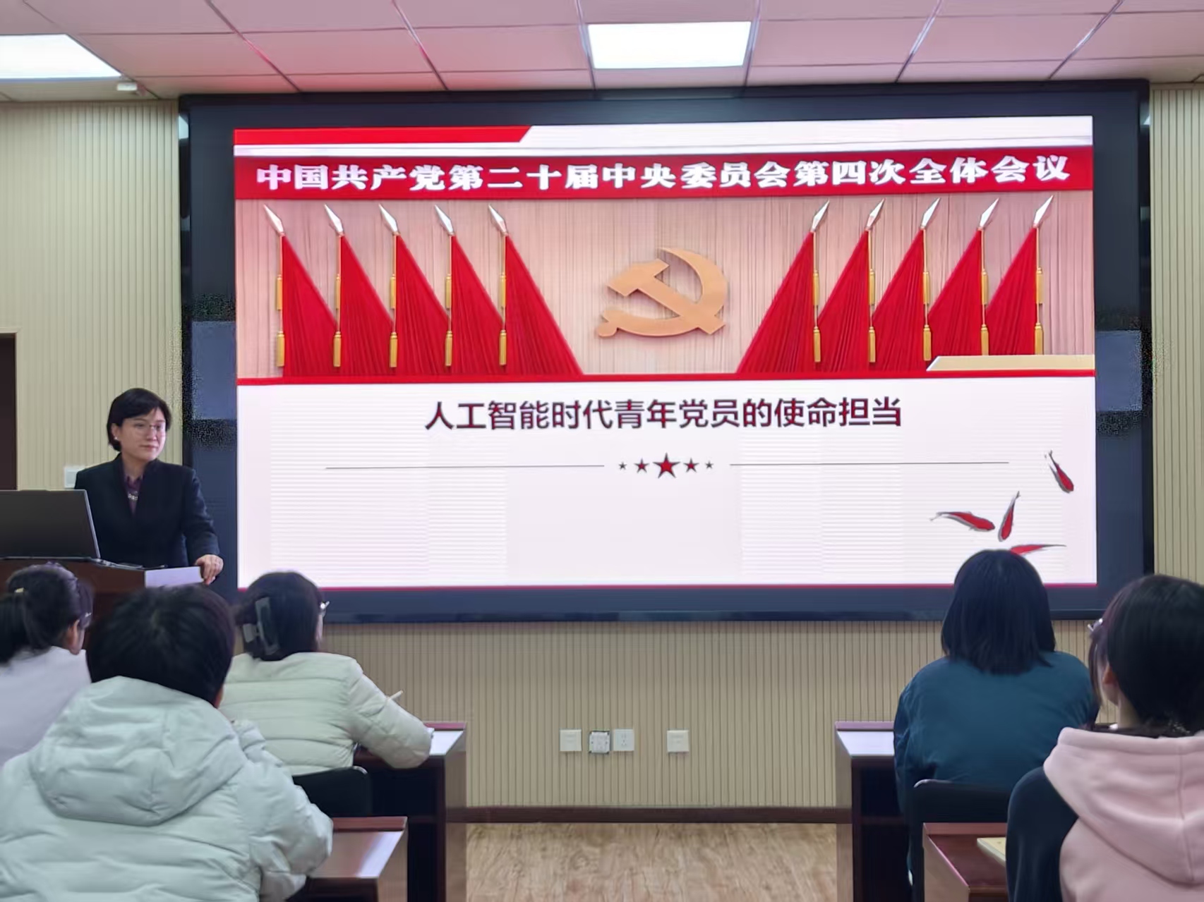 12月2日,数据科学学院党委书记张玉为学院学生讲授《人工智能时代青年党员的使命担当》思政课,深入解读党的二十届四中全会精神,引导同学们在新时代中明确责任,发挥积极作用。